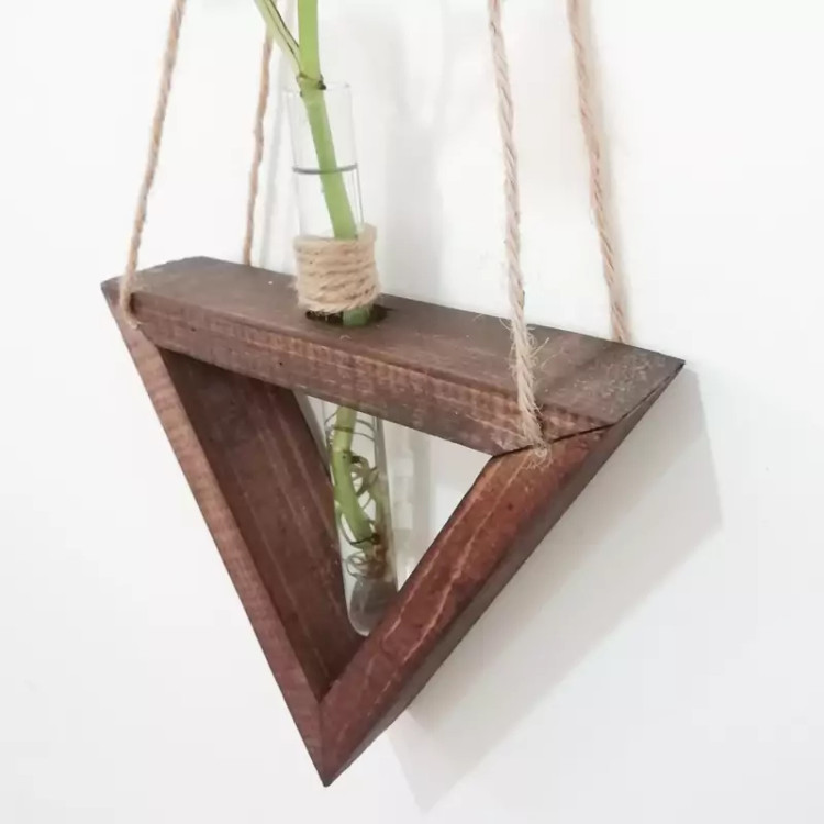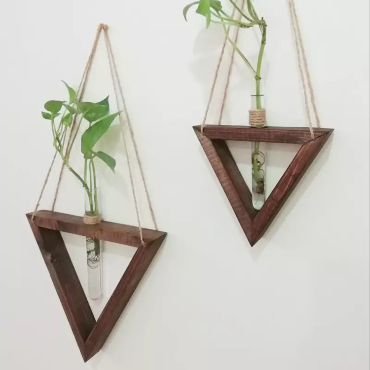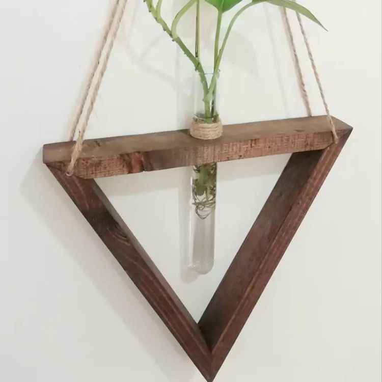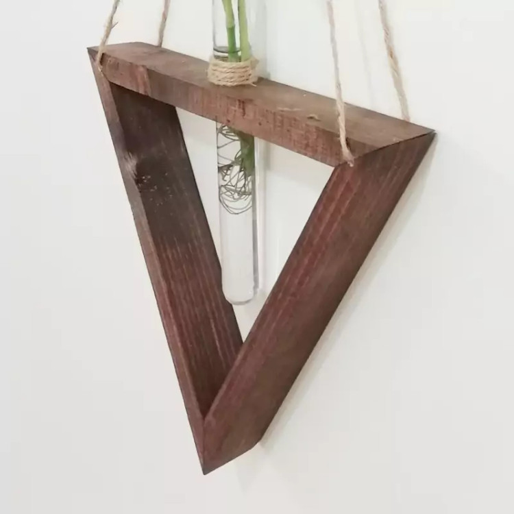 شلف چوبی با قاب باکس مثلثی(سایز کوچک) همراه با ظرف شیشه ای) مناسب برای رشد گیاه زنده