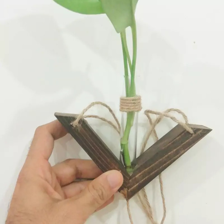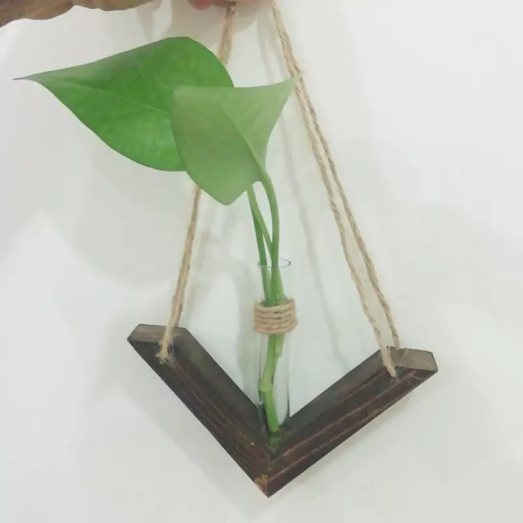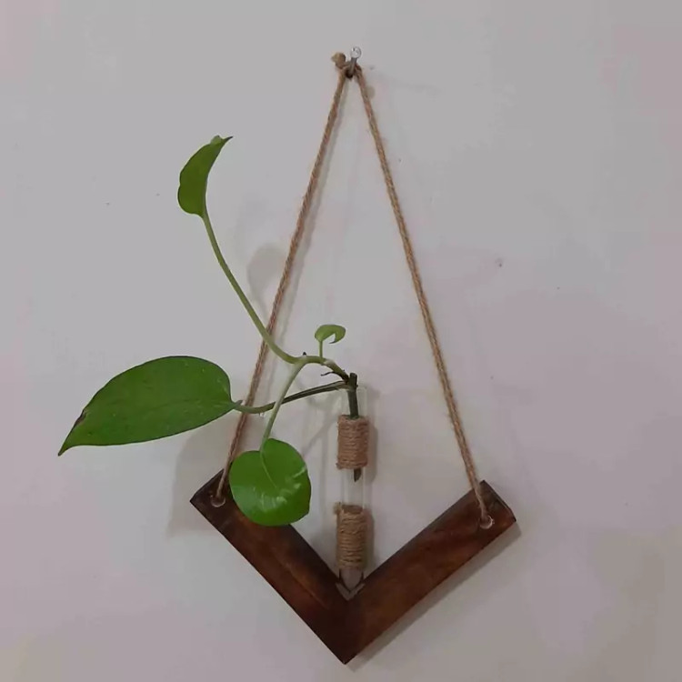 گلدان آویزچوبی دیواری با ظرف شیشه ای گیاه مدل سون