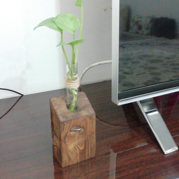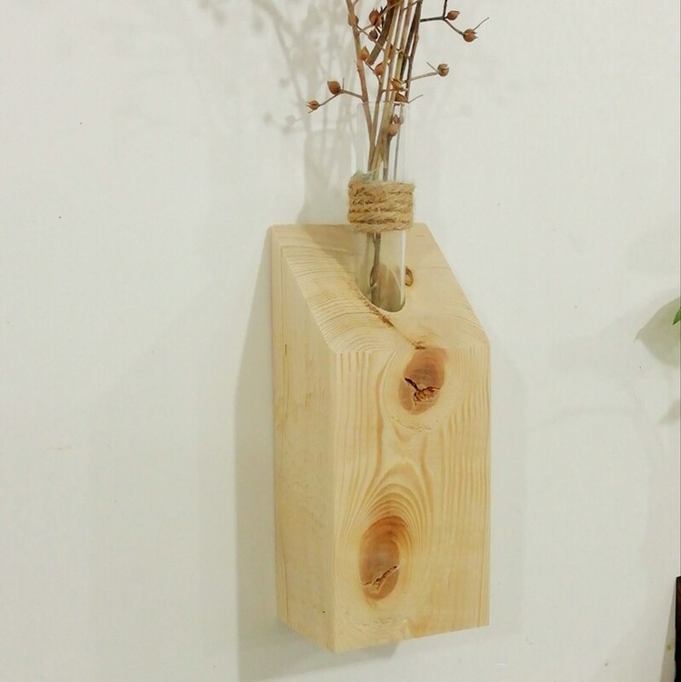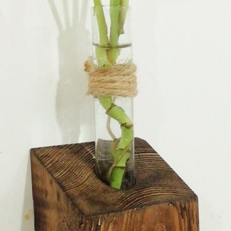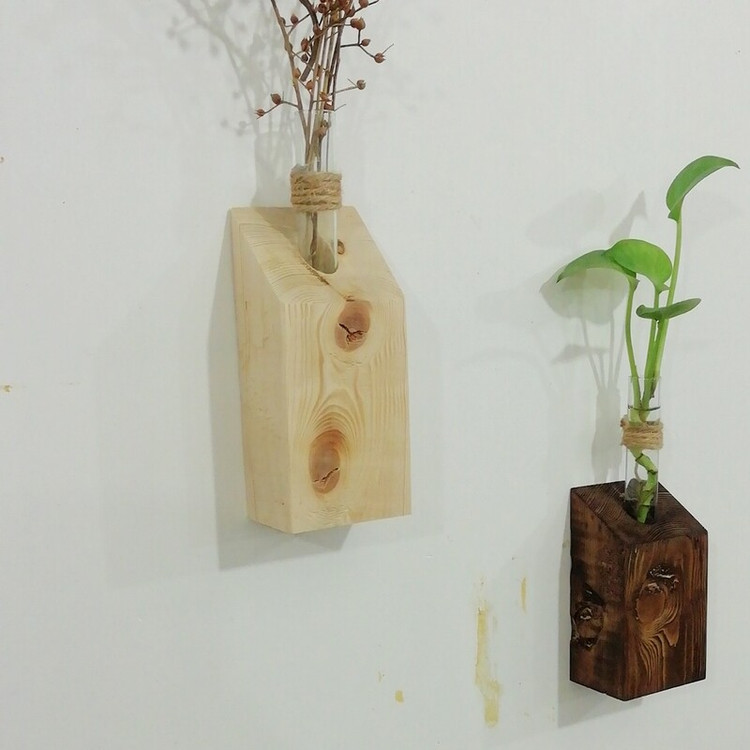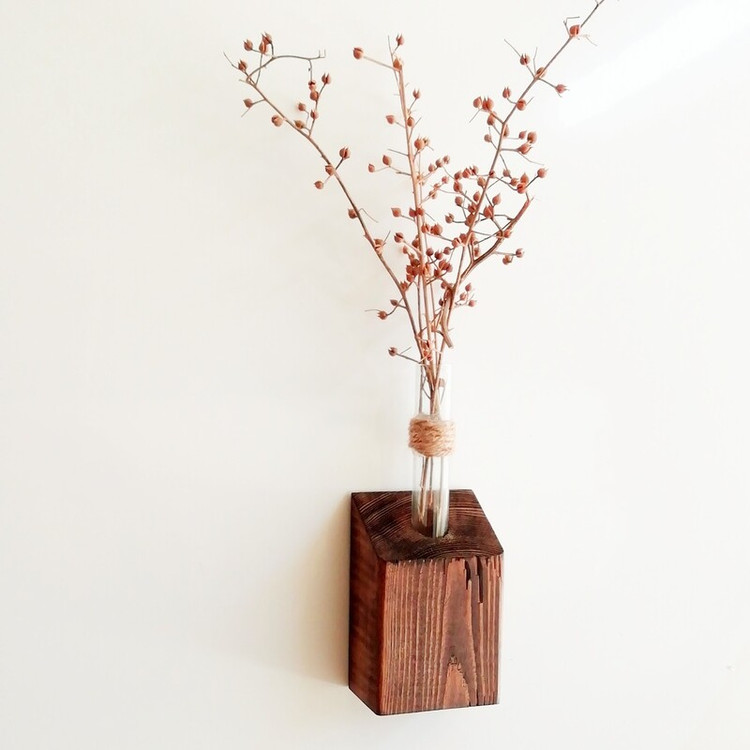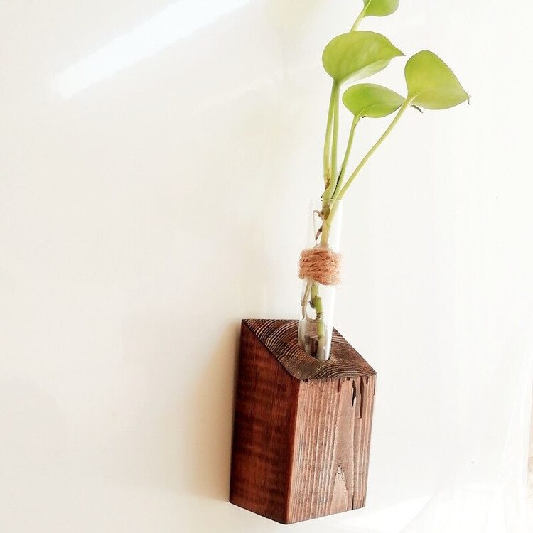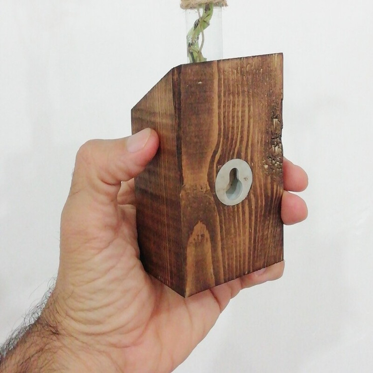 گلدان چوبی با ظرف شیشه ای با امکان رشد گیاه زنده در آن و با امکان نصب روی دیوار و رومیزی