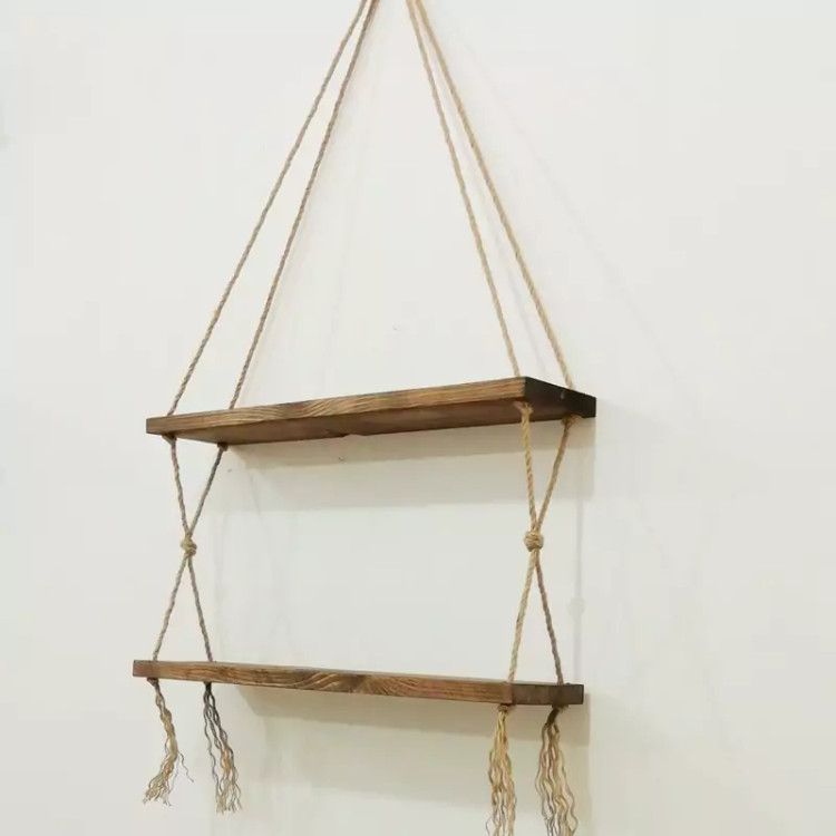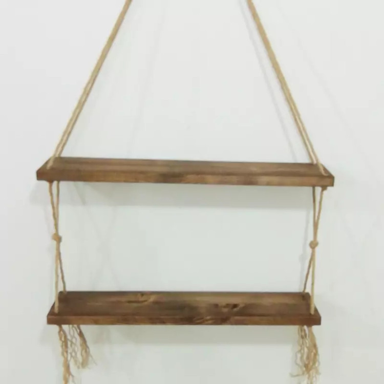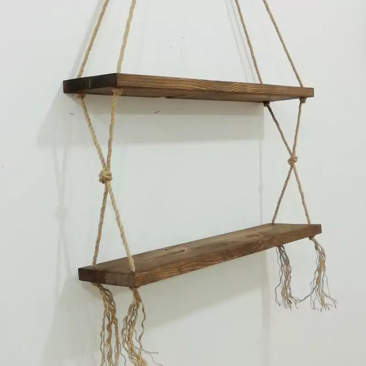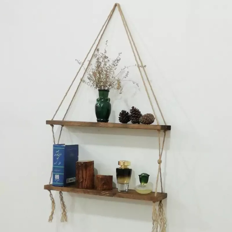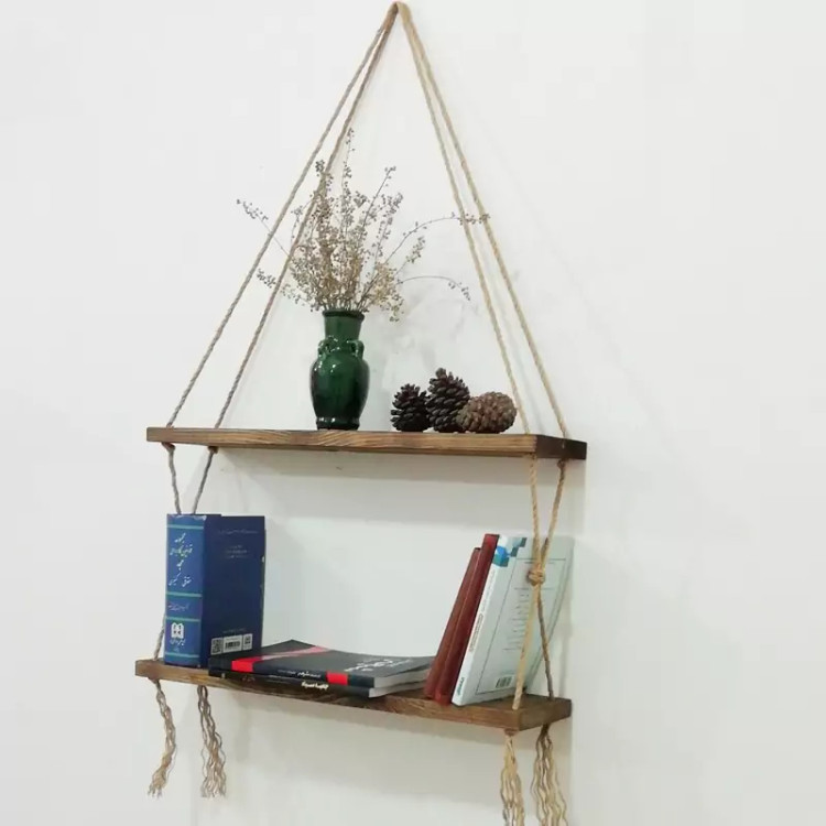 شلف چوبی دو طبقه با آویز کنفی با کاربری کتابخانه چوبی و...