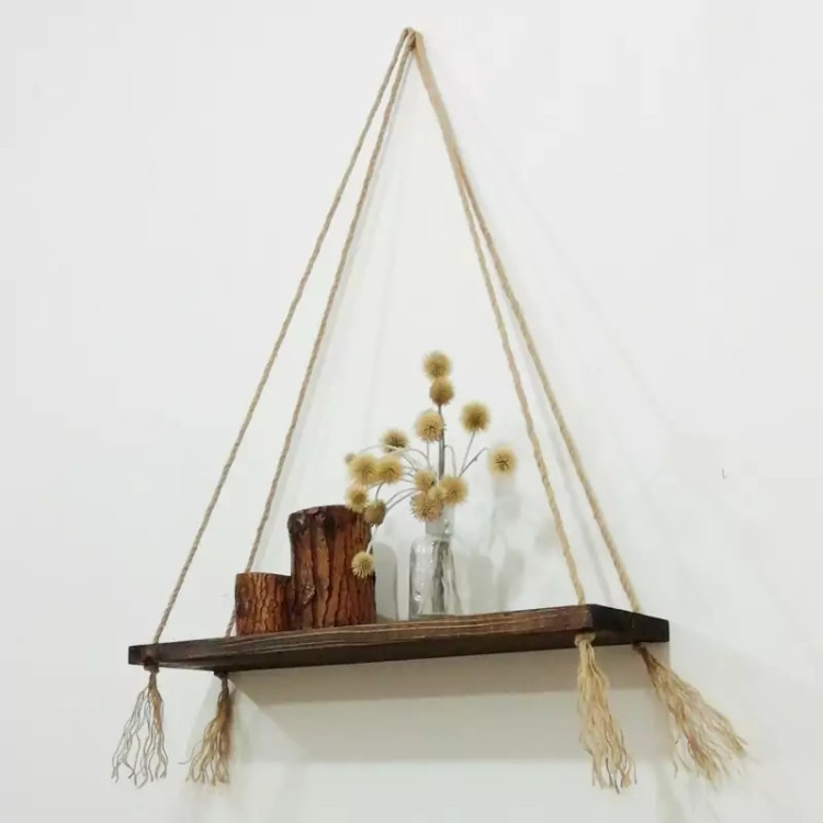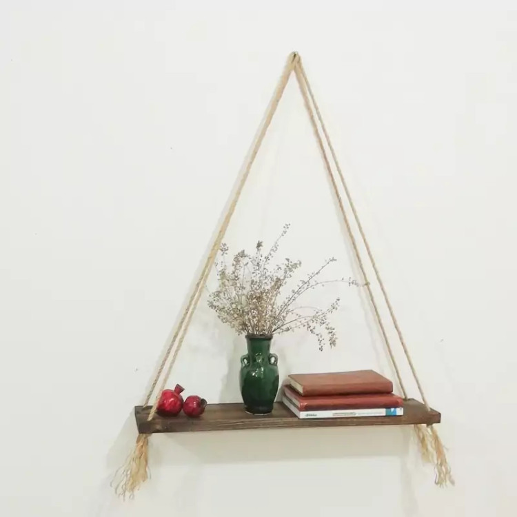 شلف چوبی یک طبقه با آویز کنفی با کاربری کتابخانه چوبی و...