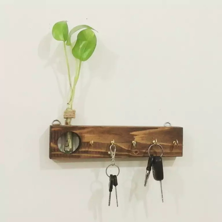 جاکلیدی همراه با ظرف شیشه ای گیاه زنده و قلاب نصب به دیوار با گذاشتن یک شاخه گیاه زنده پتوس زیبایی منحصر به فردی به منزل شما خواهد بخشید.