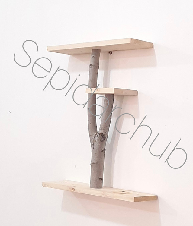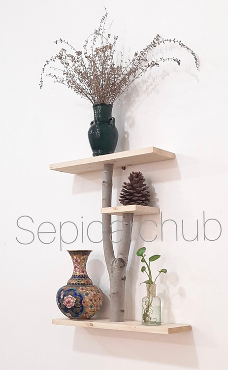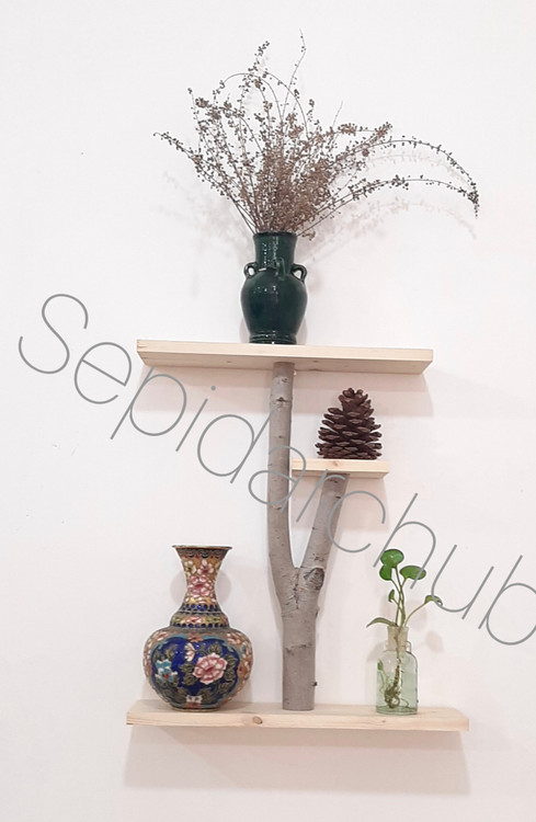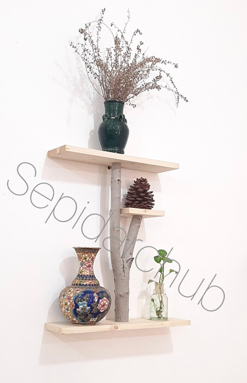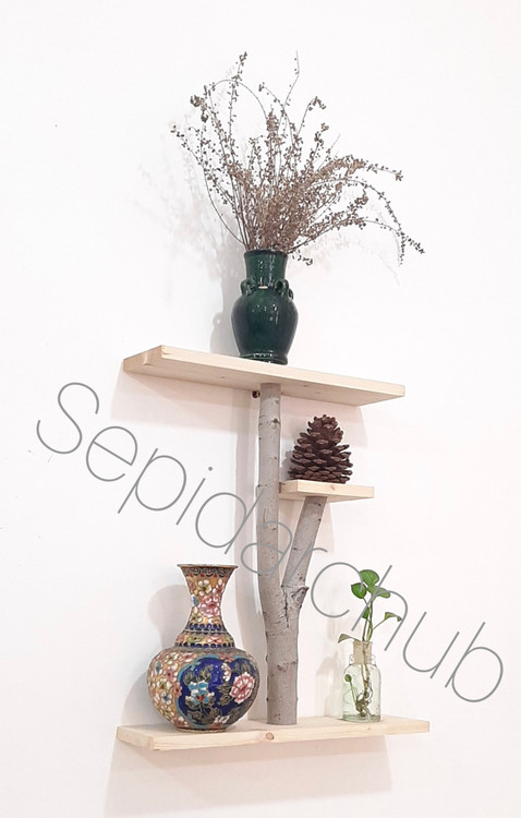 شلف چوبی سه طبقه با نمای تنه درخت طبیعی(بلوط)/سایز متوسط - انتخابی برای دوستداران طبیعت