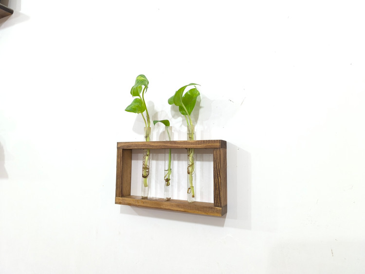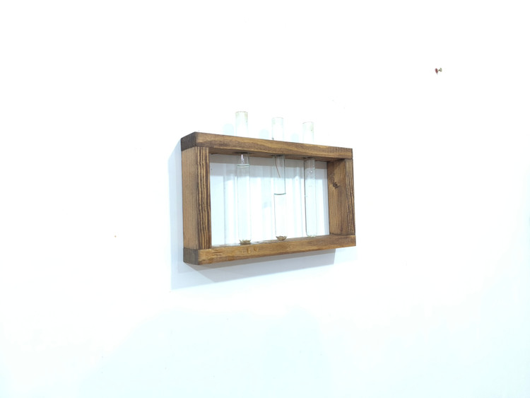 گلدان چوبی با قاب باکس مستطیلی با سه ظرف شیشه ای مدل مجنون