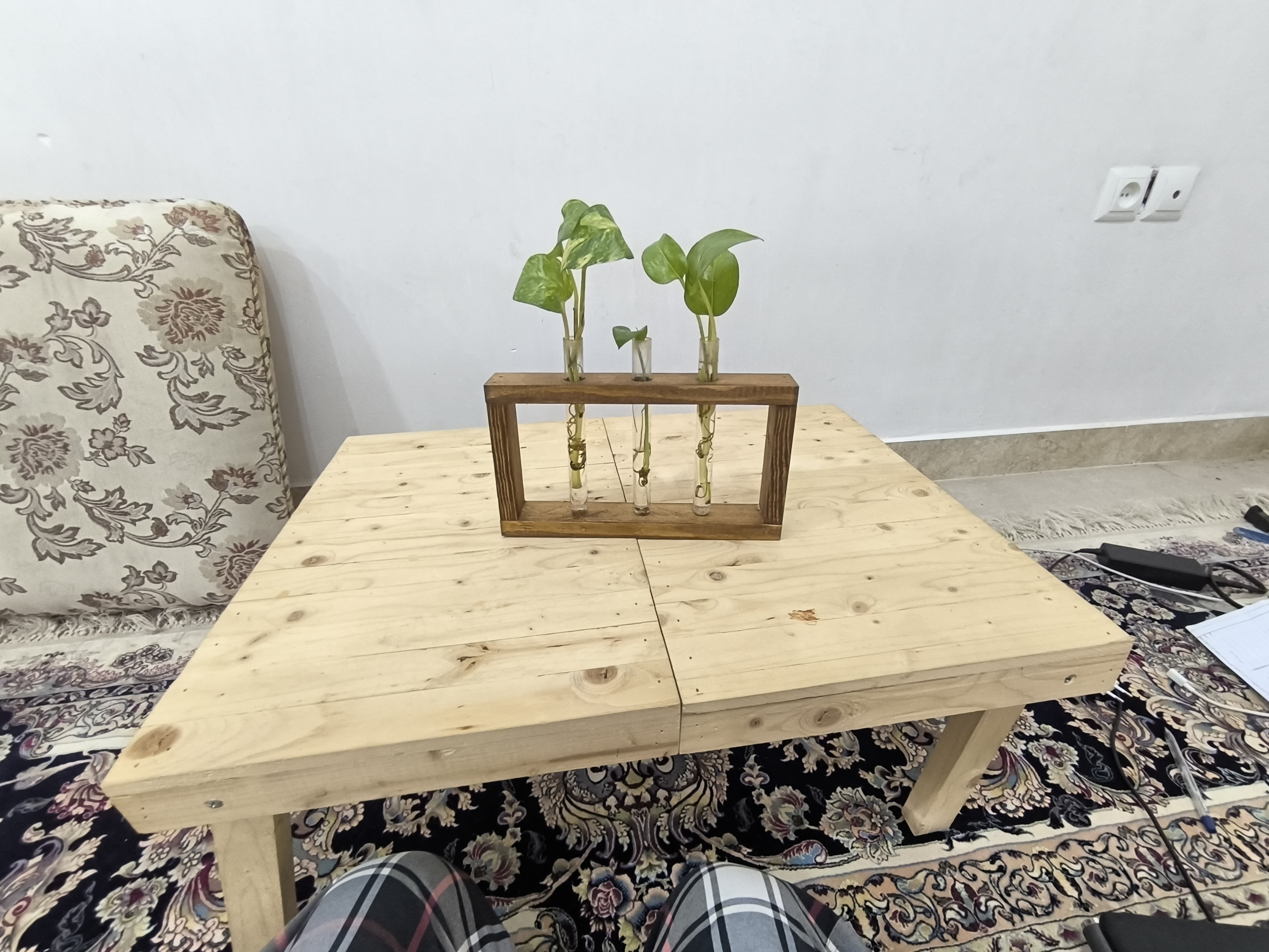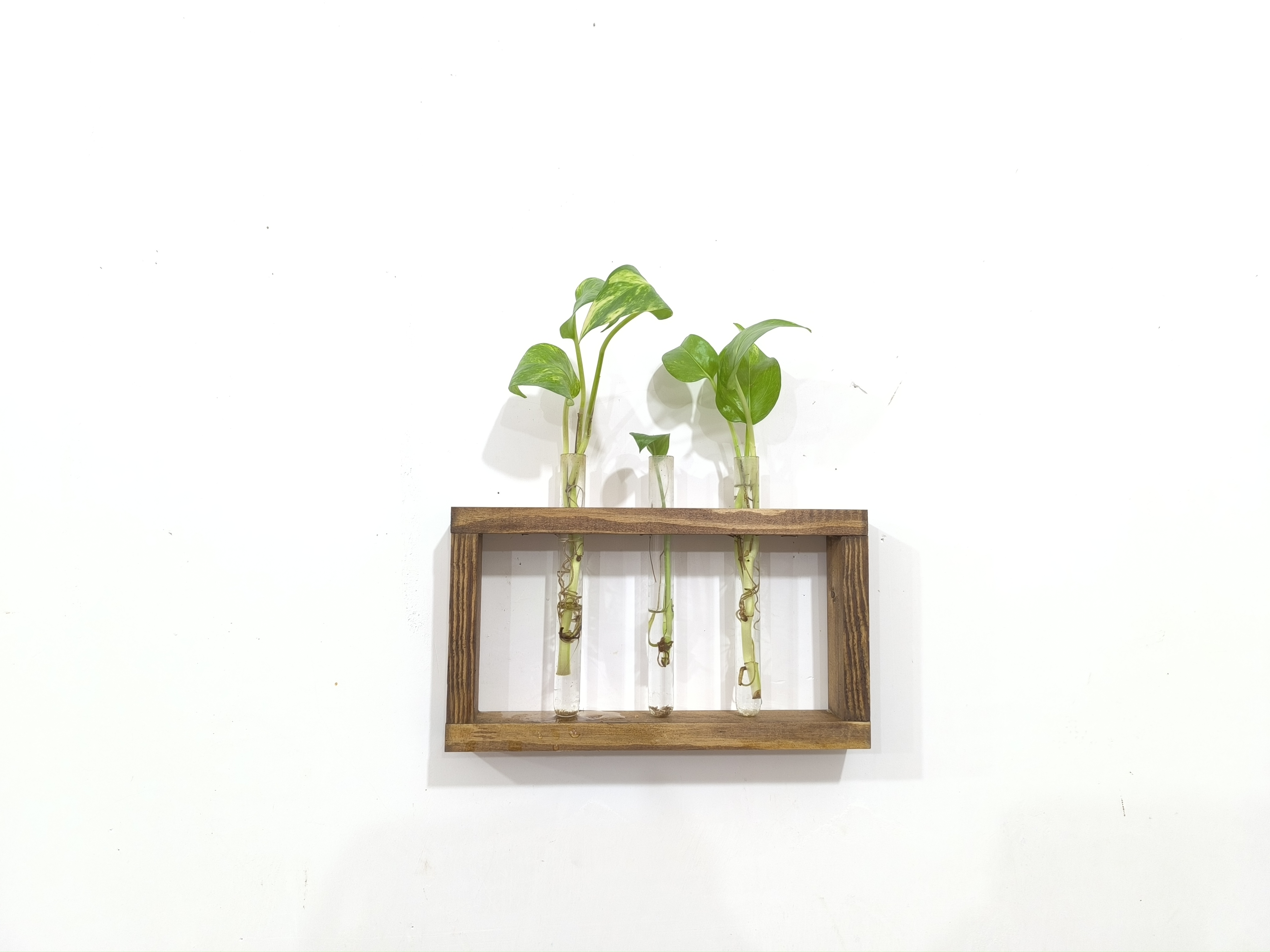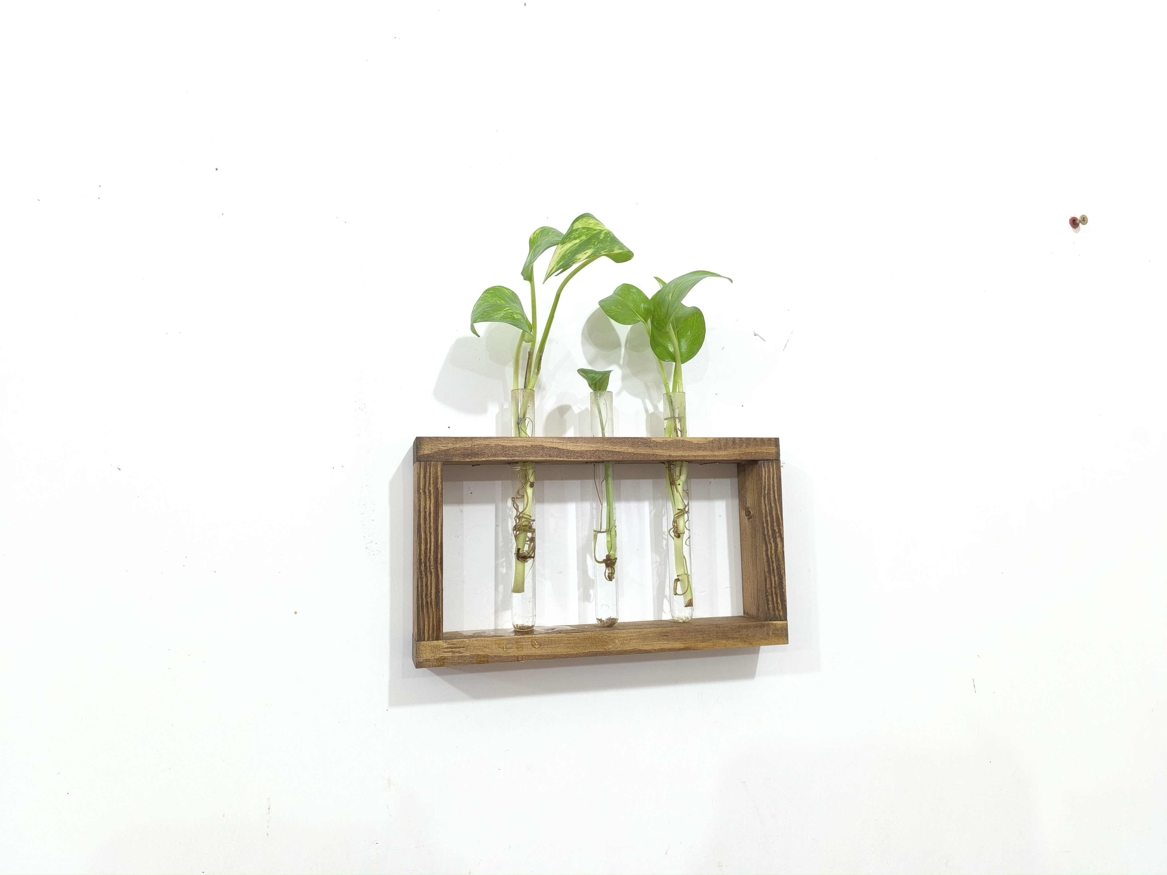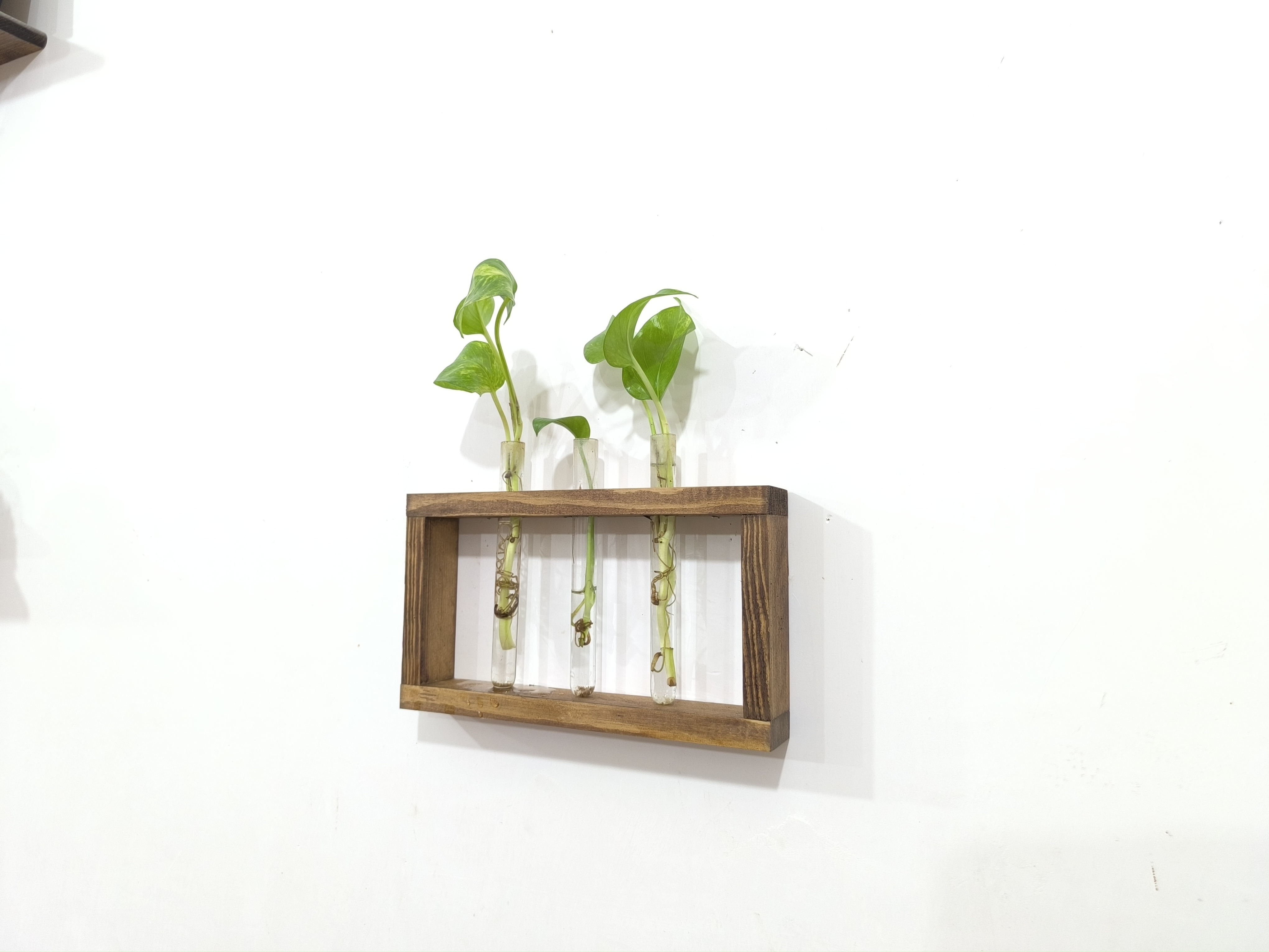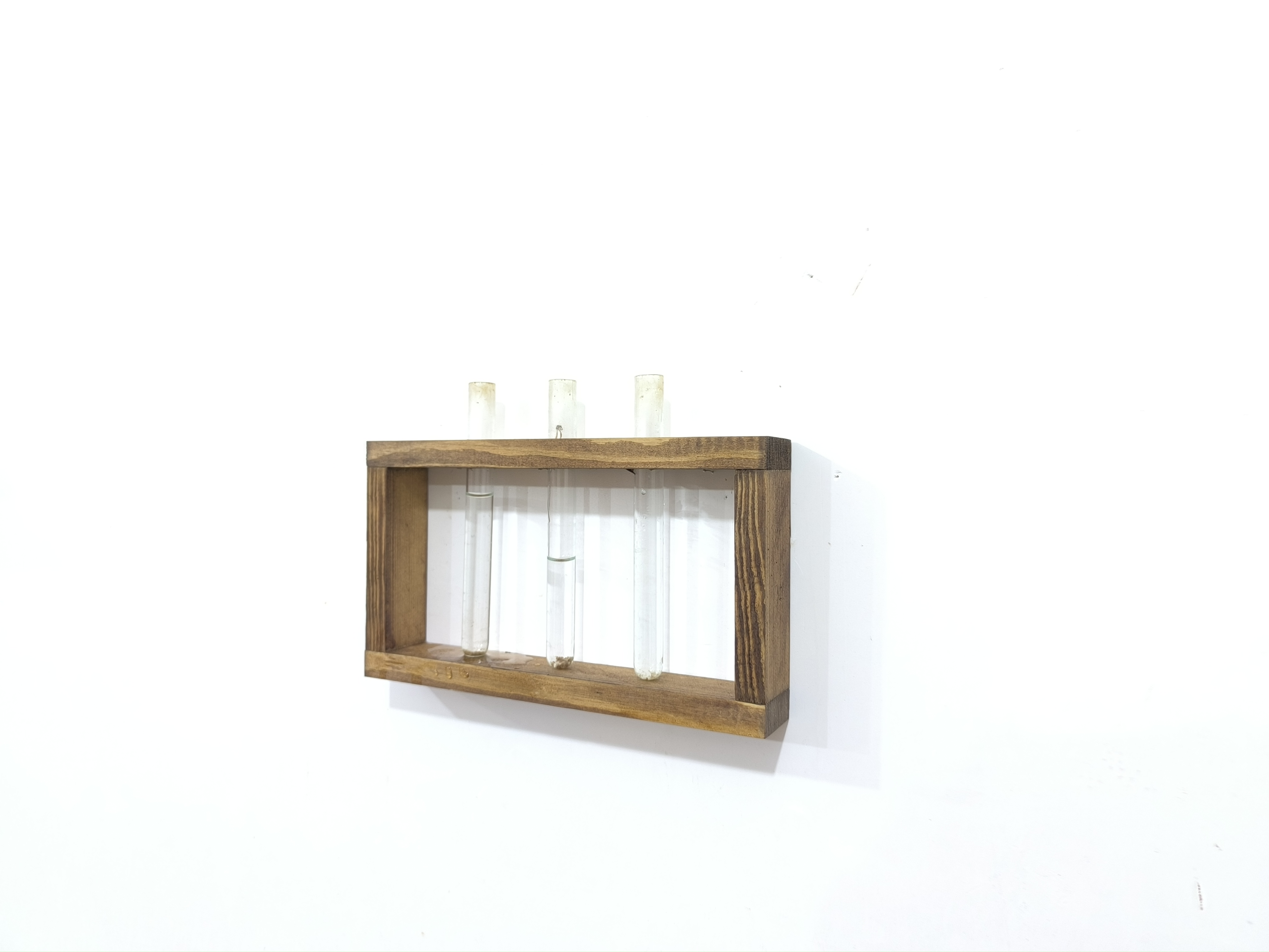 گلدان چوبی با قاب باکس مستطیلی با سه ظرف شیشه ای مدل مجنون