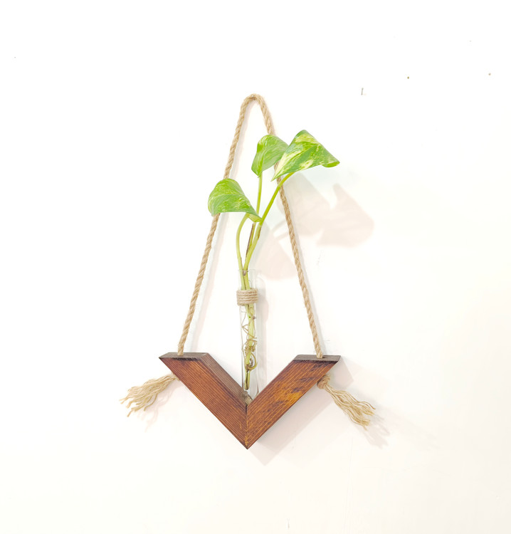 گلدان چوبی دیواری مدل سون همراه با ظرف شیشه ای