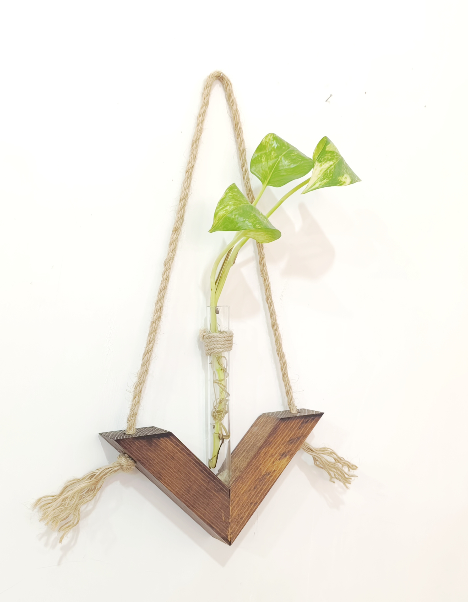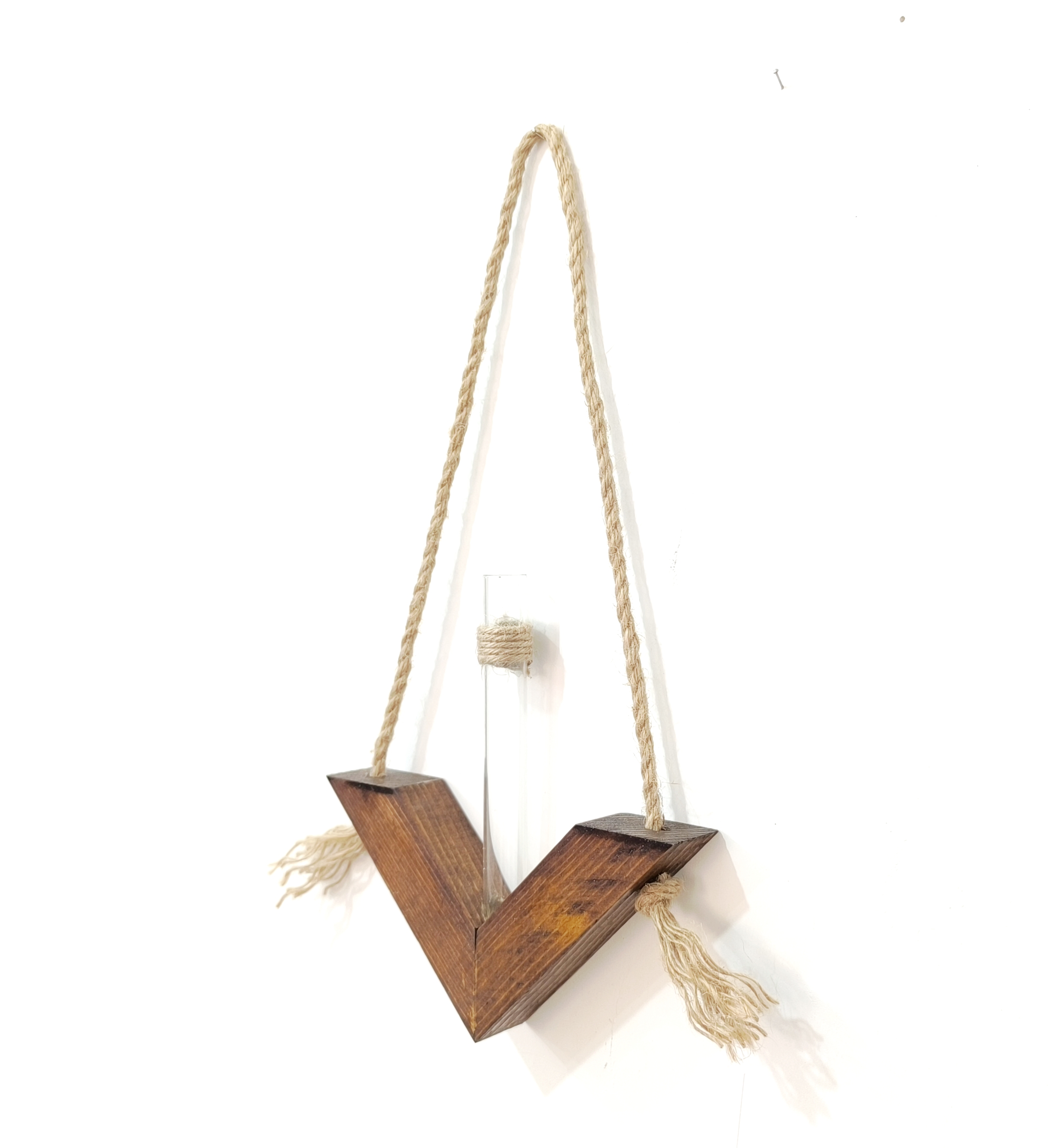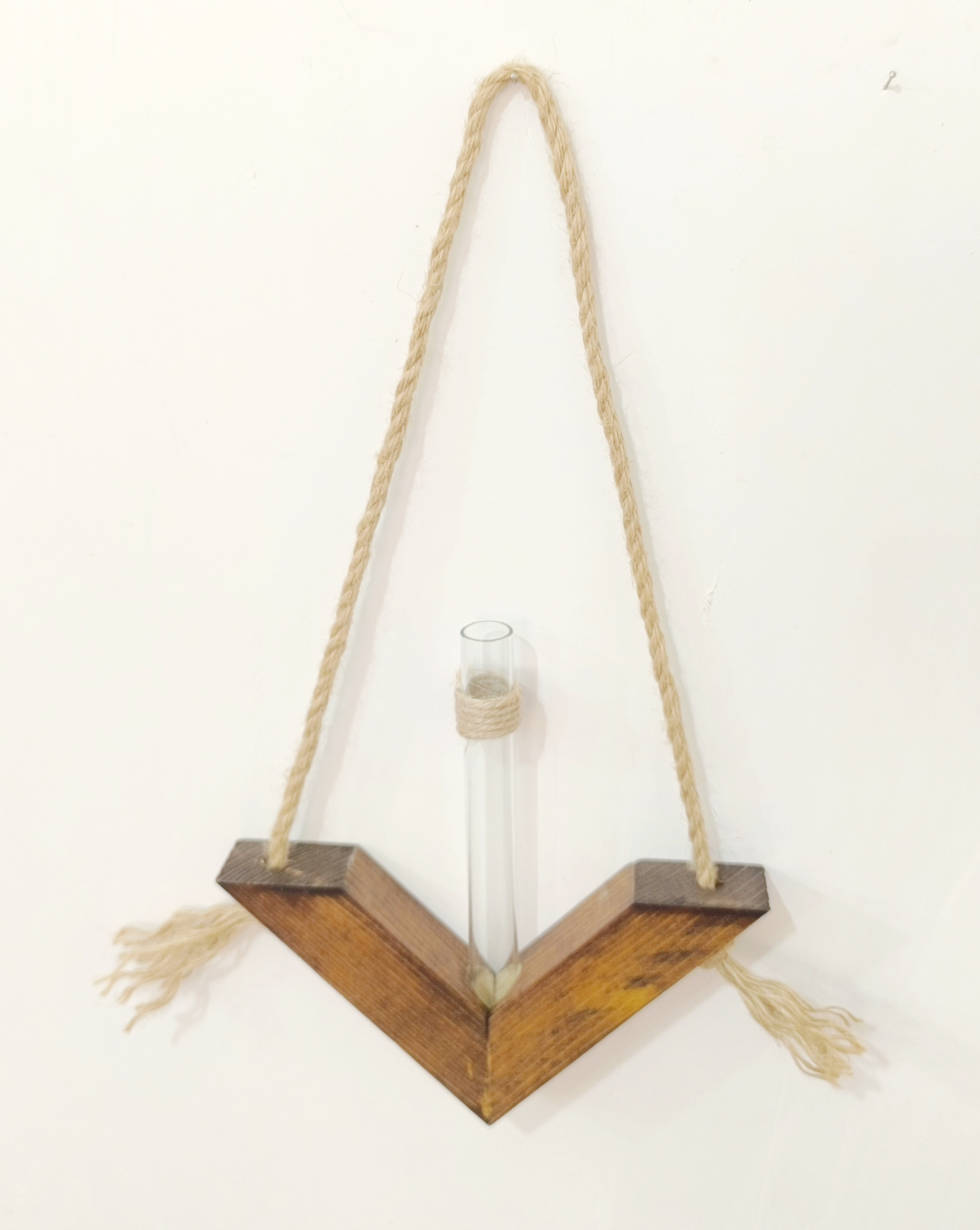 گلدان چوبی دیواری مدل سون همراه با ظرف شیشه ای